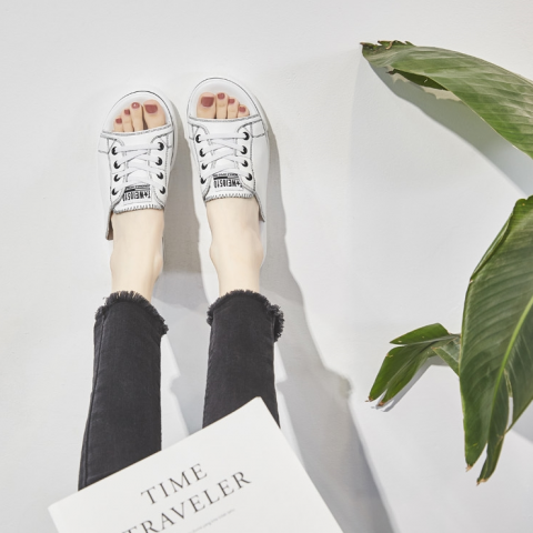 夏季新款松糕厚底小白鞋休闲透气懒人一字拖 白色 35