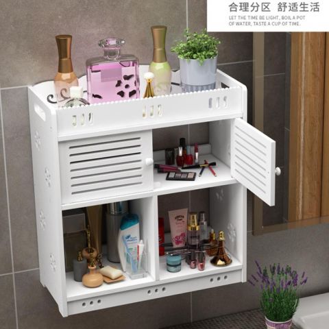 卫生间置物架防水免打孔浴室壁挂 光滑瓷砖墙壁-大门粘贴款