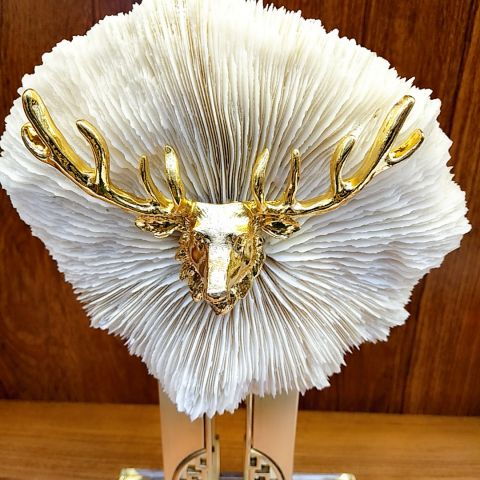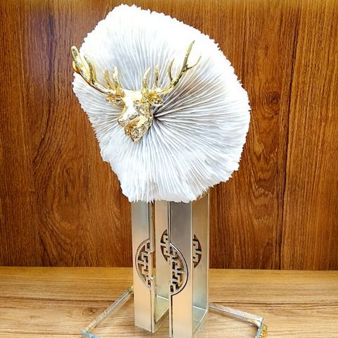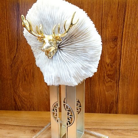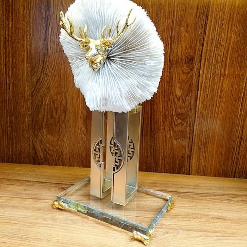 福在眼前~水晶底座+天然珊瑚+金属支架的完美结合