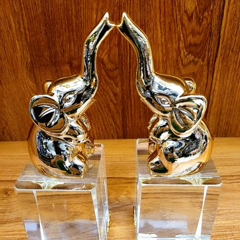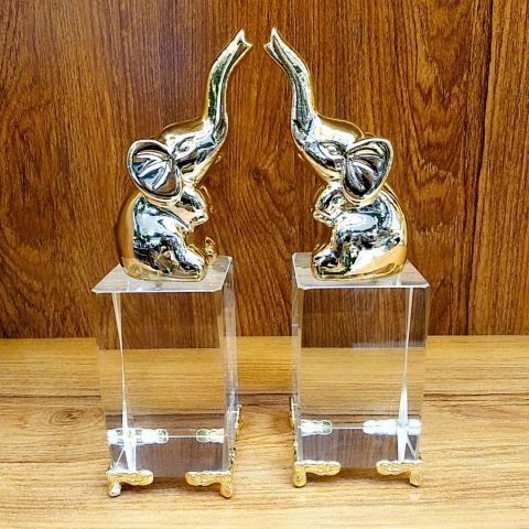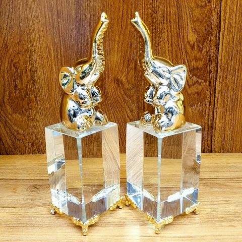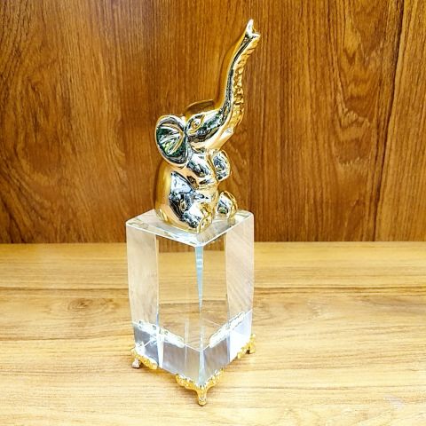 新中式现代风家居摆件,水晶底座搭配金色金色小象,精致现代