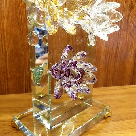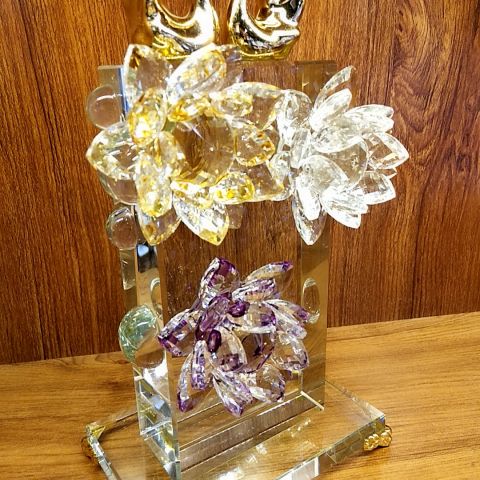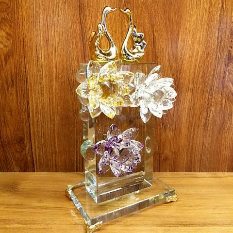 创意家居现代轻奢摆件,水晶莲花搭配陶瓷金色天鹅,寓意幸福美满大富大贵