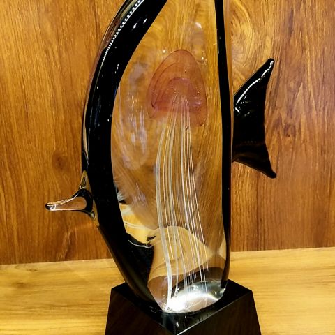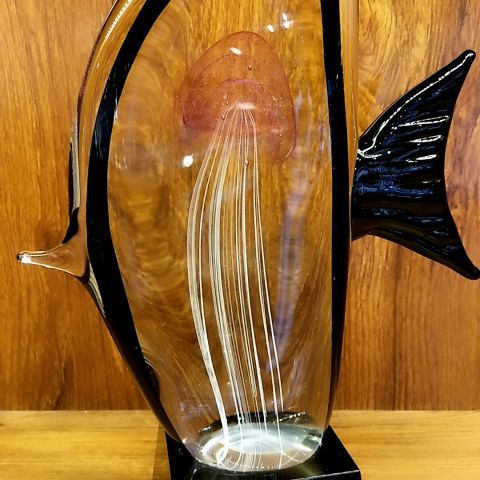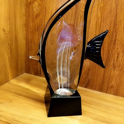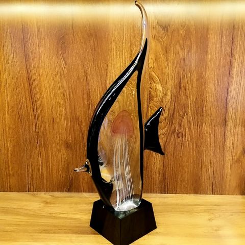 琉璃水母鱼搭配黑色水晶底座,高端大气