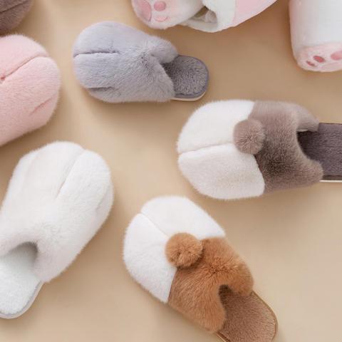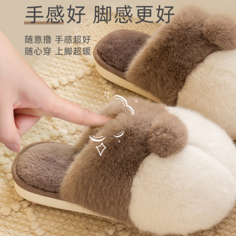 柯基臀毛绒棉拖鞋女秋冬季室内保暖可爱家居 柯基灰 27-28