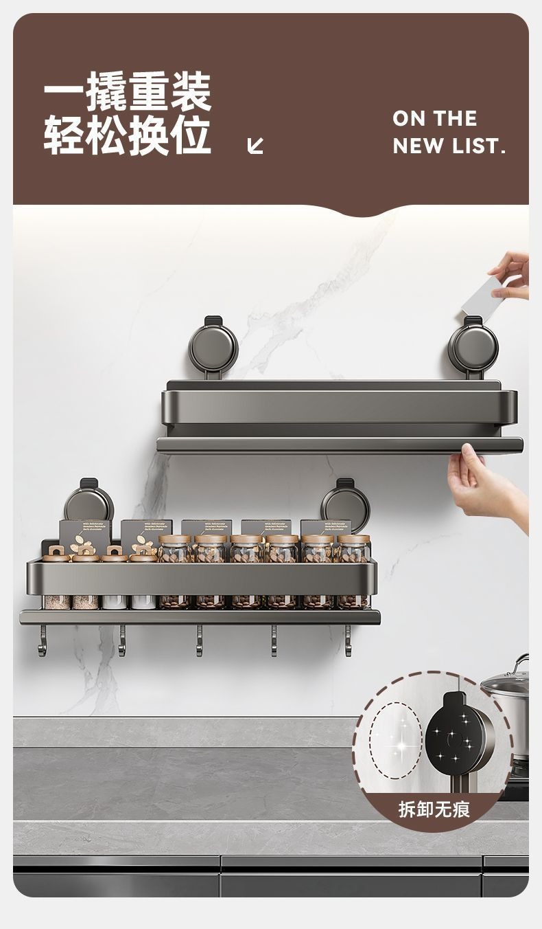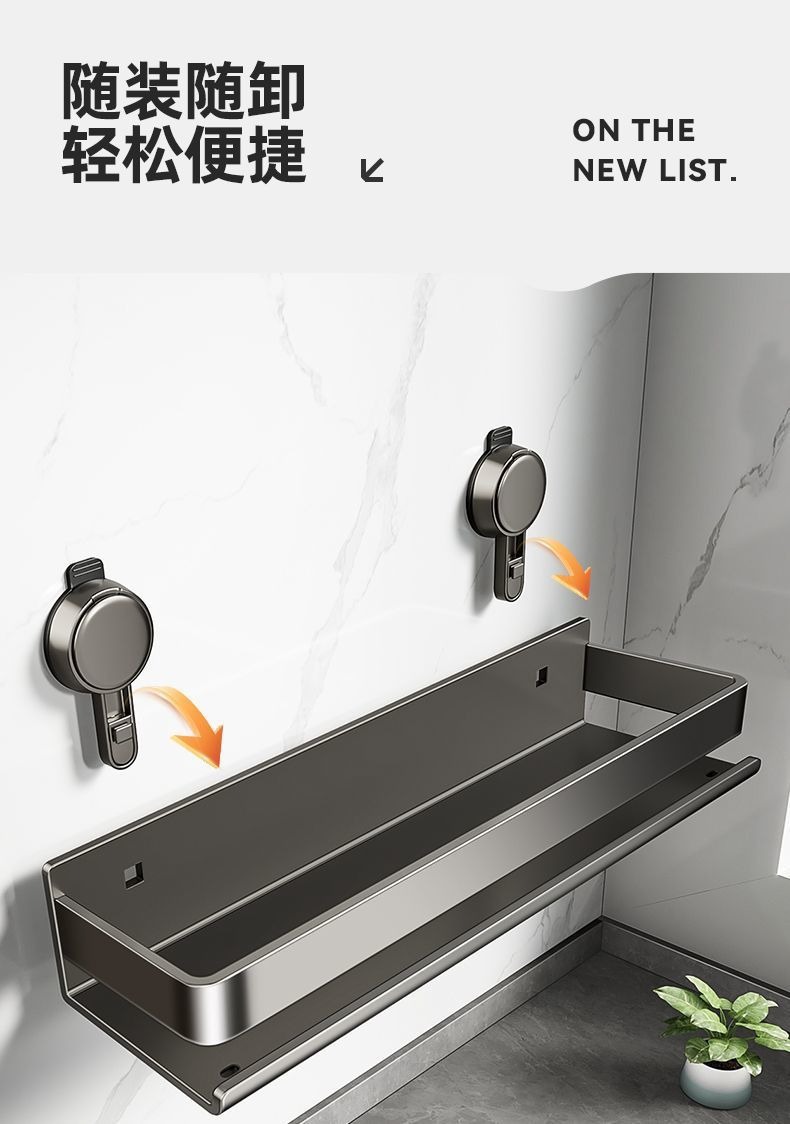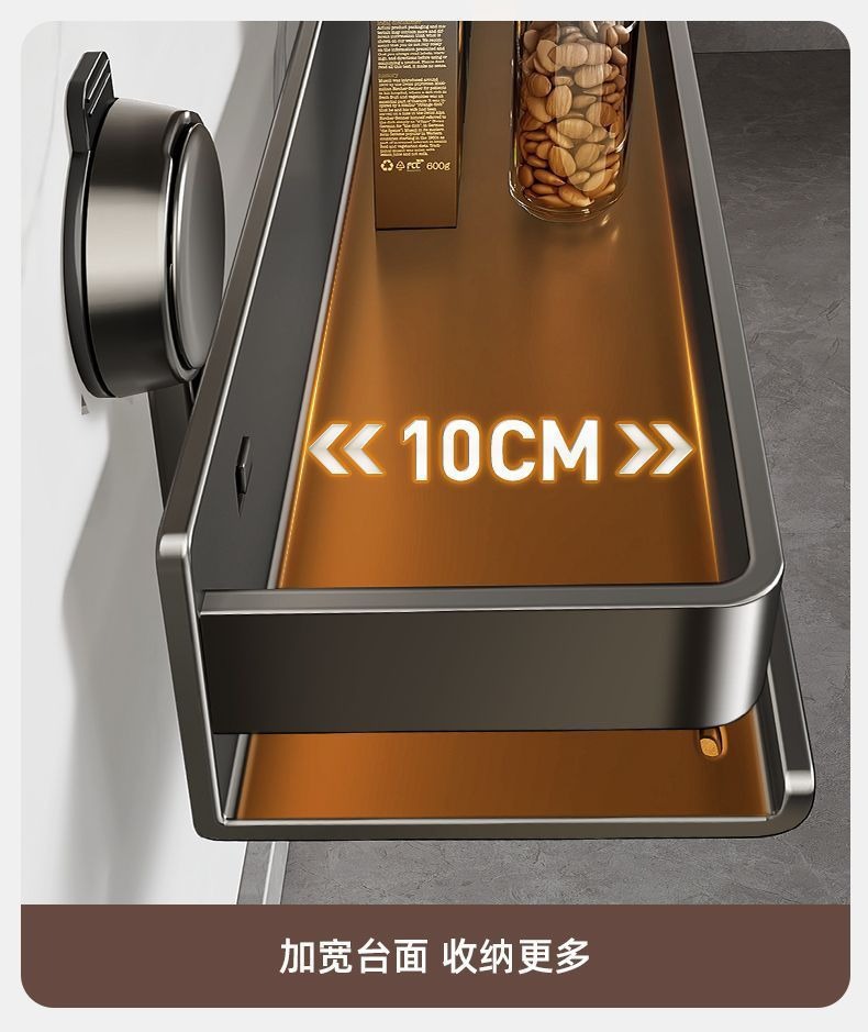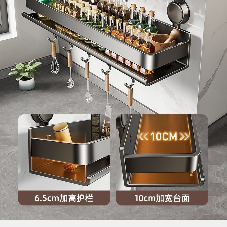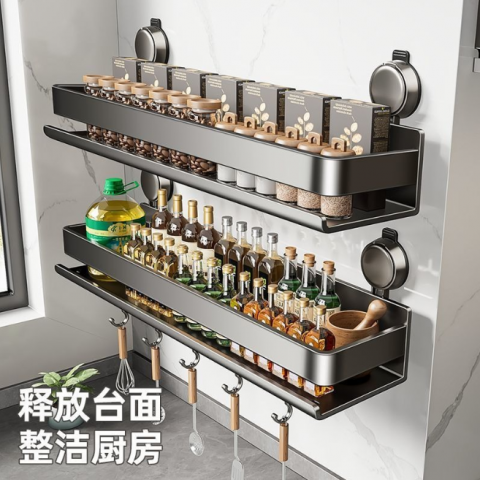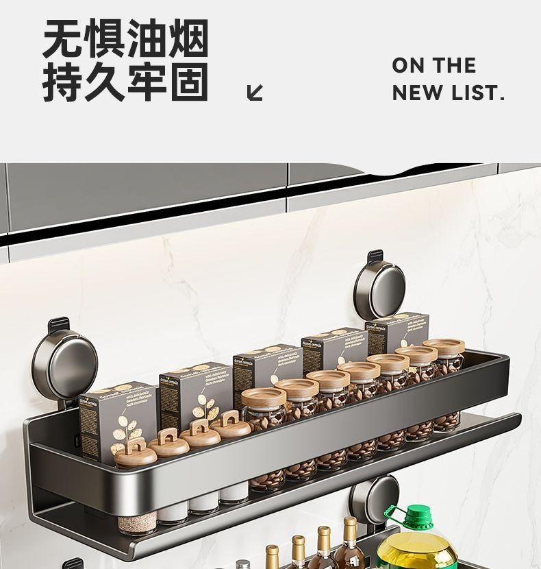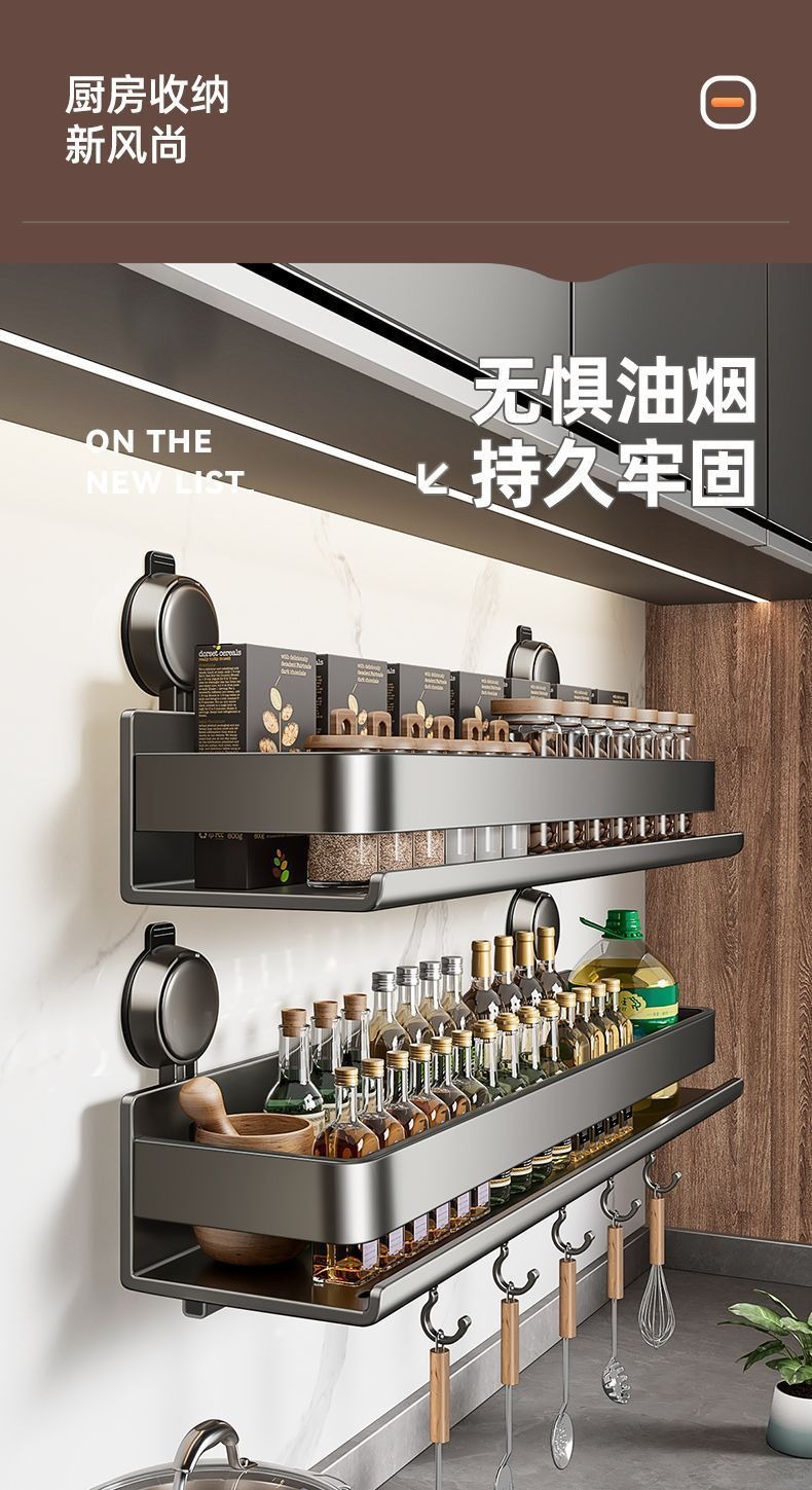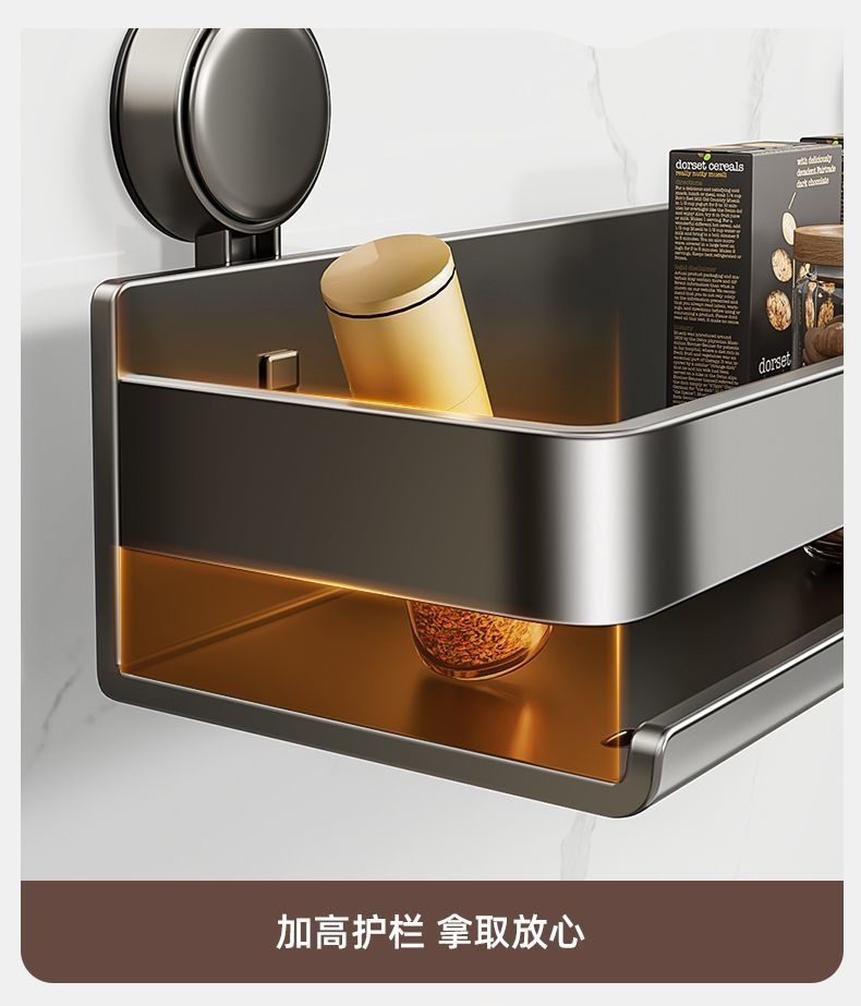 蓝藤吸盘厨房置物架免打孔家用壁挂式调料用品墙上多功能收纳架子 吸盘式单层 枪灰色 30cm