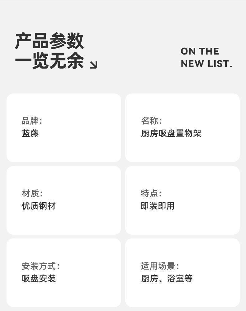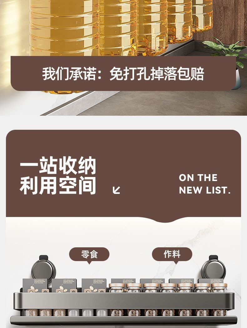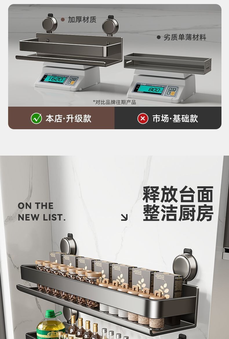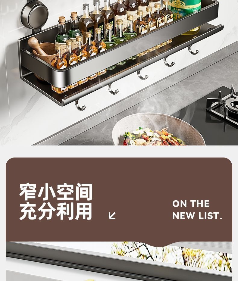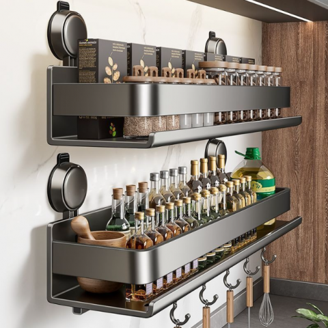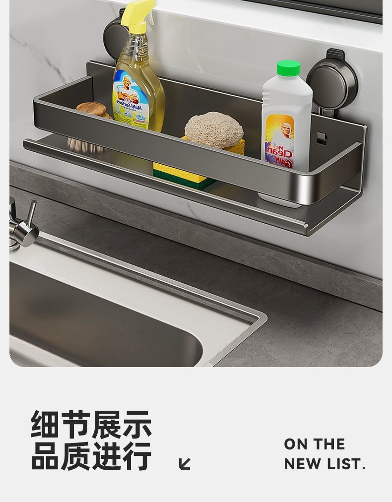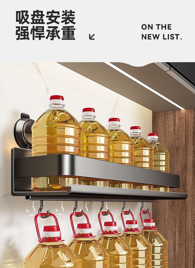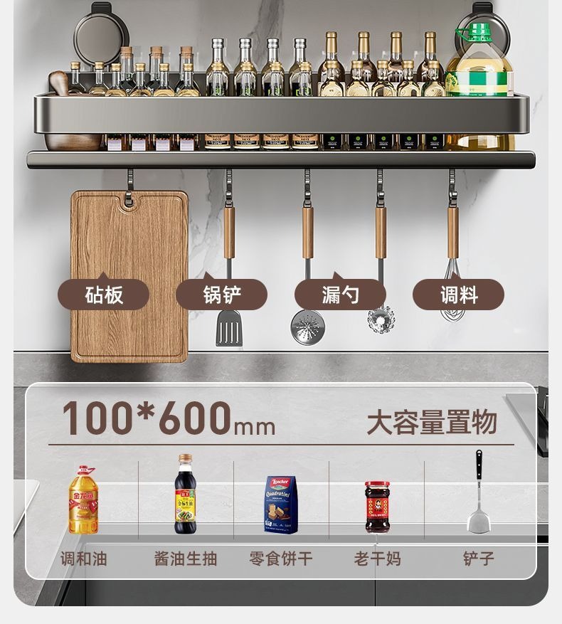 蓝藤吸盘厨房置物架免打孔家用壁挂式调料用品墙上多功能收纳架子 吸盘式单层 枪灰色 30cm
