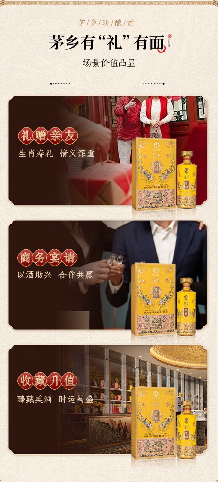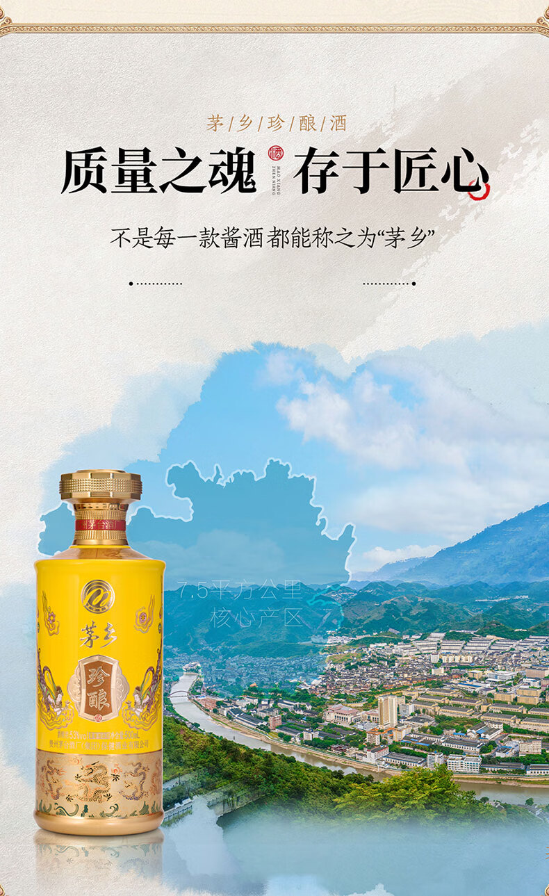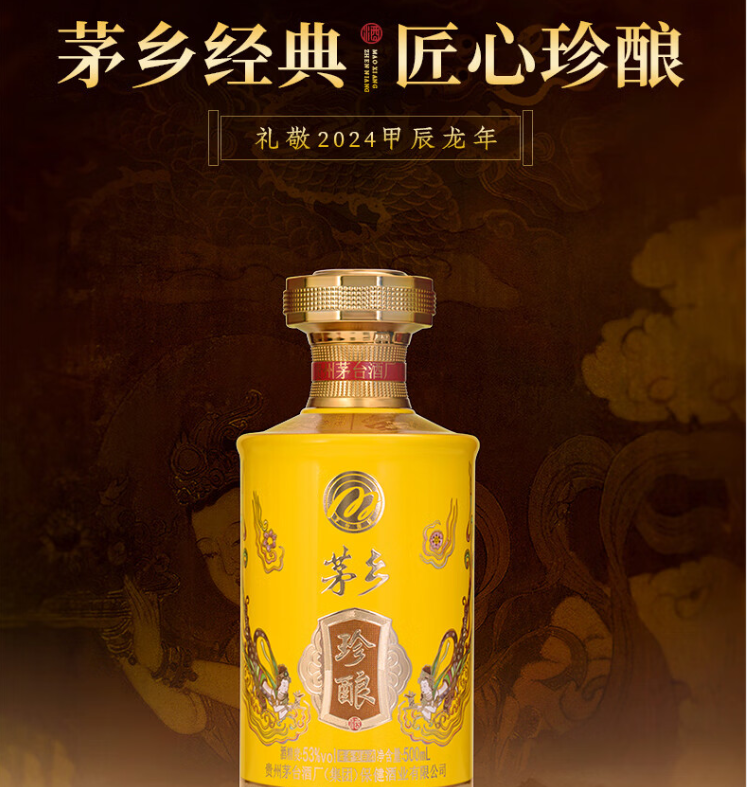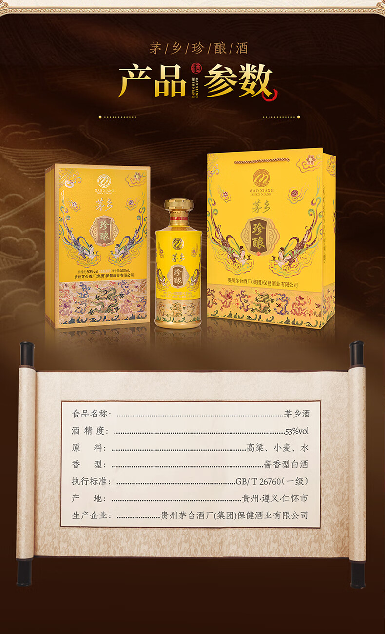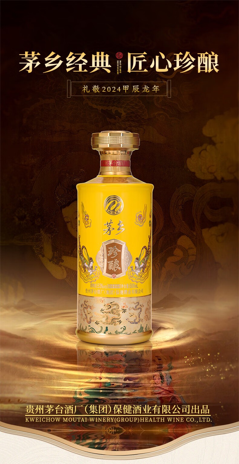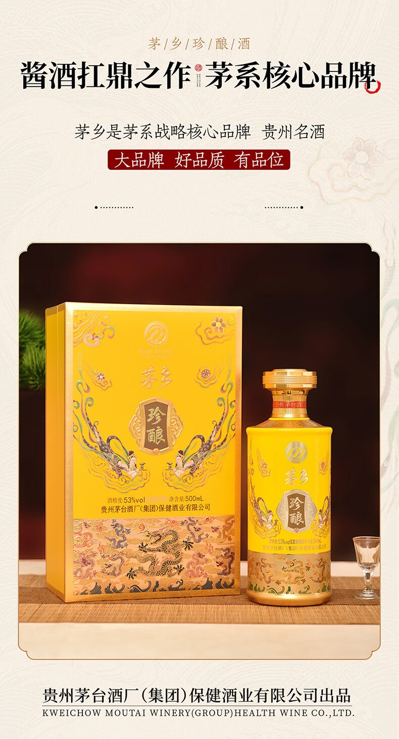 J-茅台家族 茅乡珍酿 贵州茅台酒厂集团保健酒业有限公司 53度酱香型白酒500ml*1瓶 上开礼盒一瓶配一个手提袋