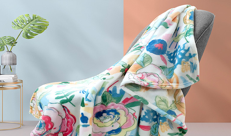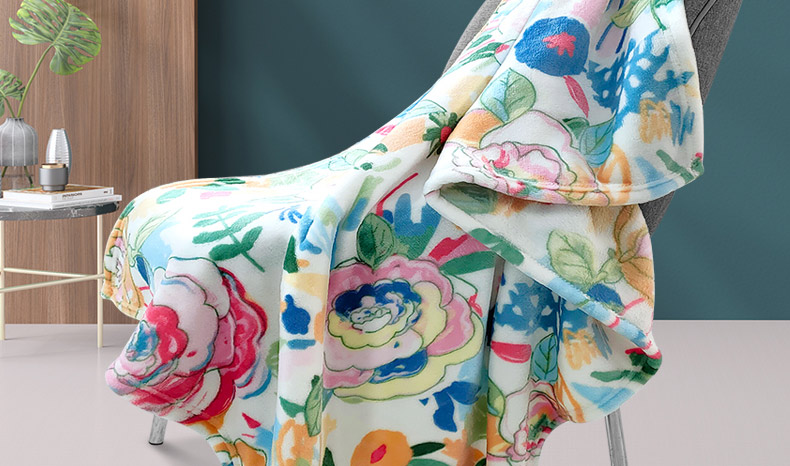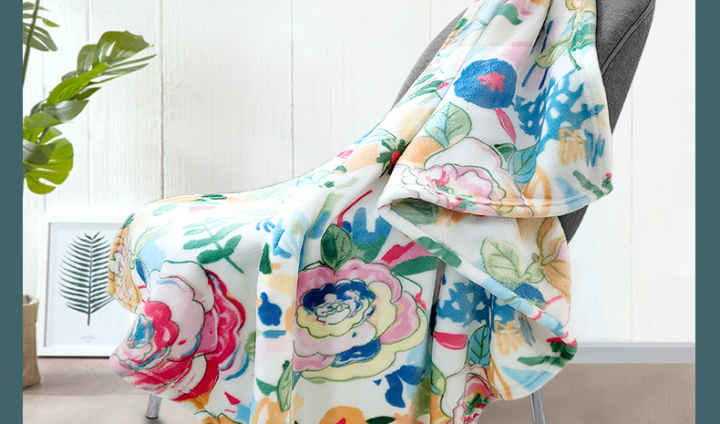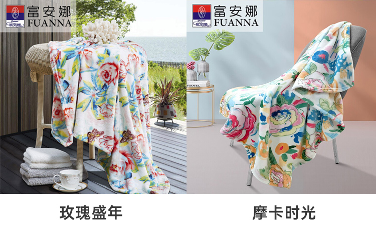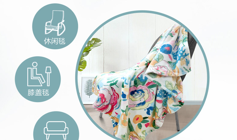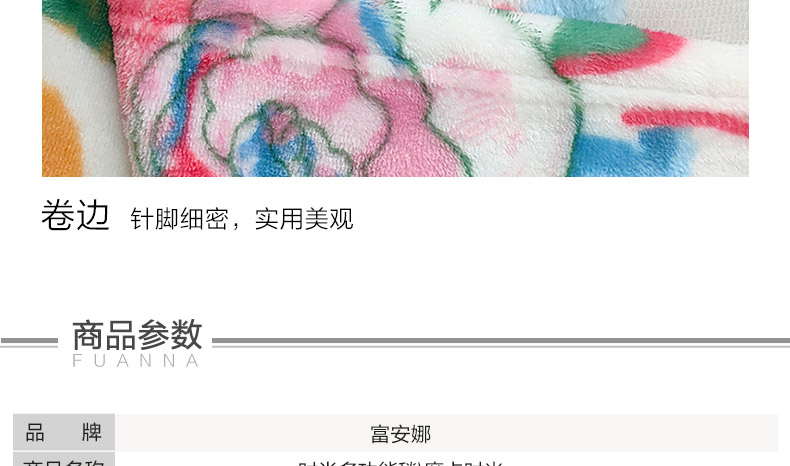 J-富安娜毛毯夏凉被夏季薄款空调毯午睡披肩旅行毯多用午休珊瑚绒毯 玫瑰盛年80*120cm