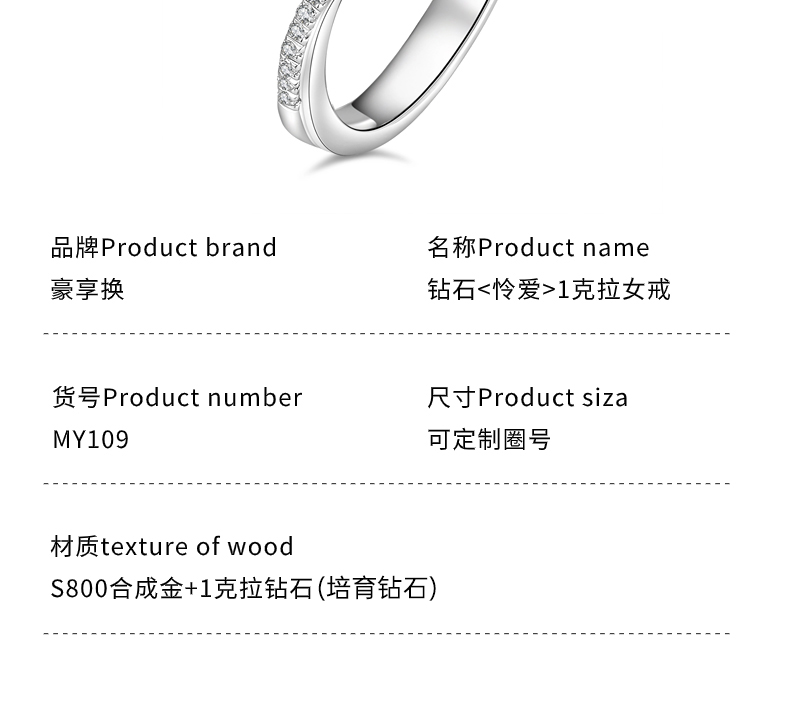 全国包邮-金六福系列*豪享换JLF CVD【培育钻石/真钻】D/FL/3EX怜爱 1克拉女式戒指 MY109(圈口10号-20号,可定制尺寸圈号)【非质量问题不支持七天无理由退货】17号圈口