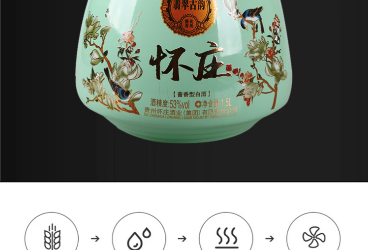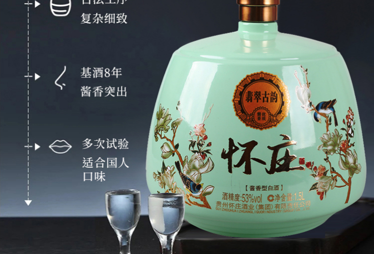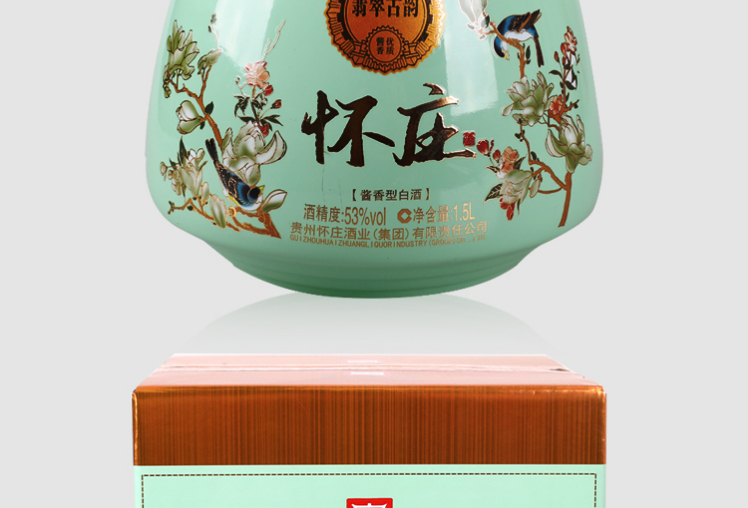 J-怀庄 翡翠古韵 纯粮固态酿造 53度酱香型白酒 1.5L坛装 手提礼盒装