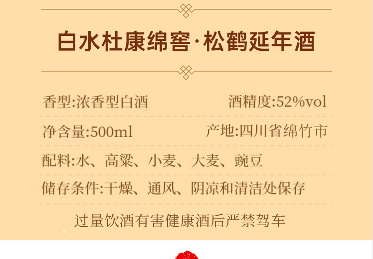 S-白水杜康 绵窖 松鹤延年 52度浓香型白酒 固态法白酒 500ml/瓶 单瓶装