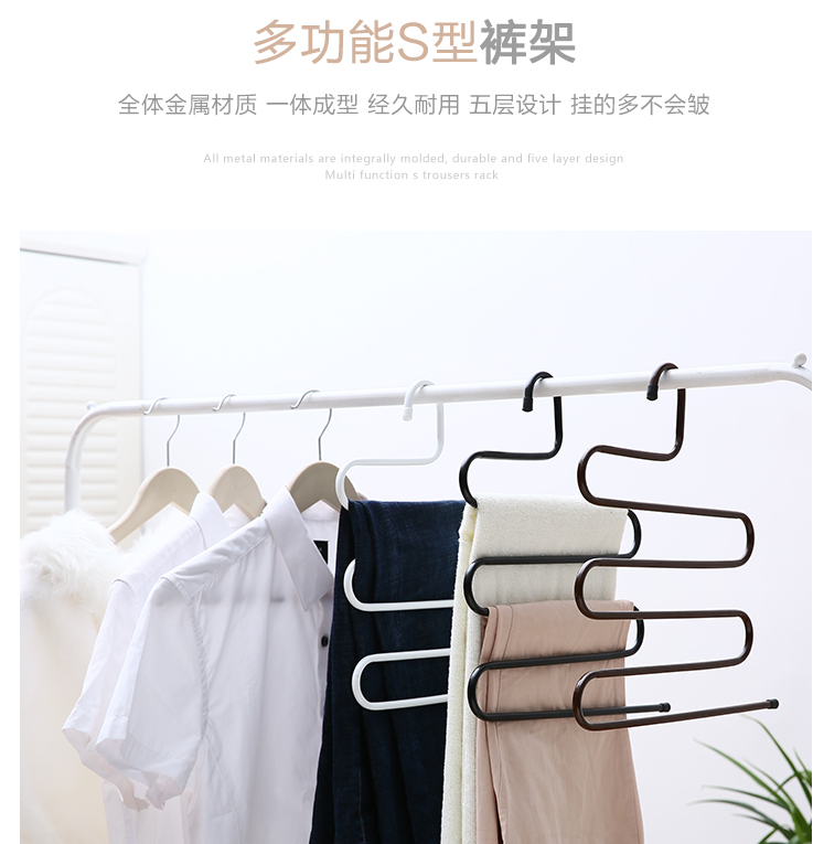 多功能魔术裤夹子s型多层裤架裤子衣架 小号黑色