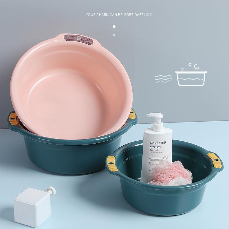 家用洗脸盆撞色加厚带孔脸盆 脸盆小号深蓝