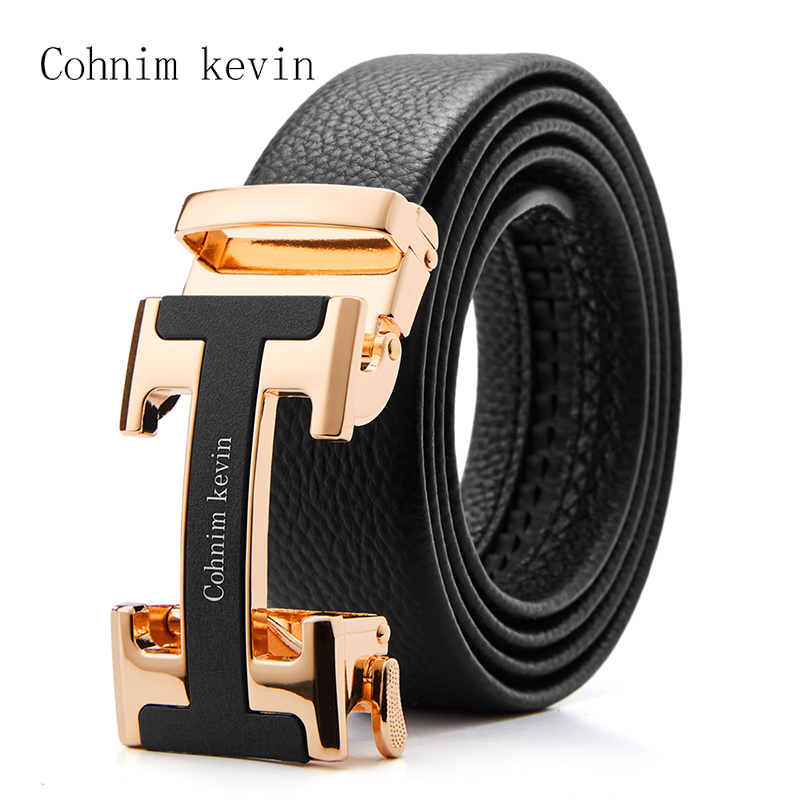 T-Cohnim kevin品牌新款真皮头层牛皮男士轻奢牛皮带自动扣裤腰带休闲百搭商 【木盒包装】C8638金+tc荔枝纹+红色木盒