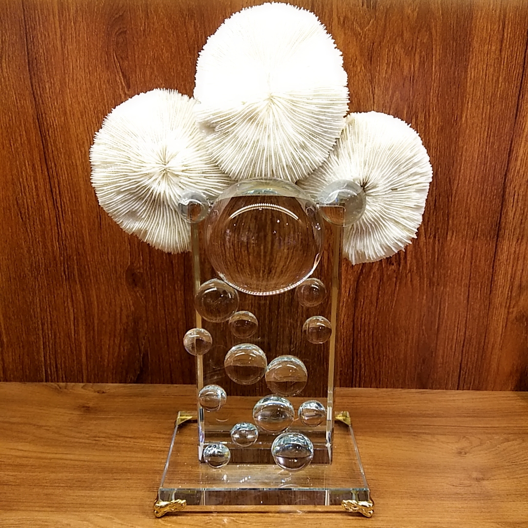 家居摆件软装饰品 客厅书房 新中式现代北欧风 水晶+珊瑚+金属的完美结合~福在眼前
