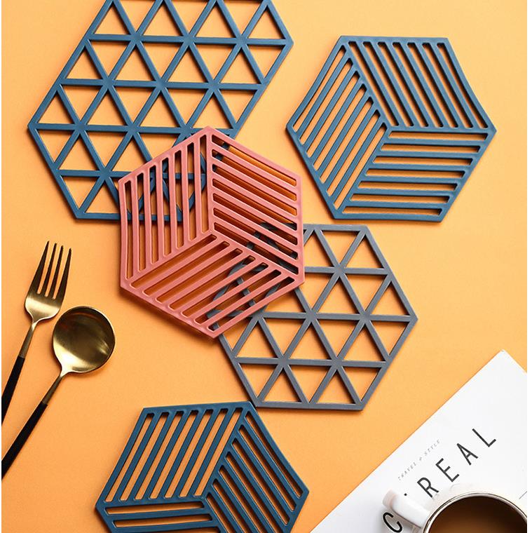 家用餐桌茶杯几何隔热垫 六边形条纹蓝色